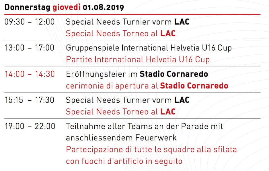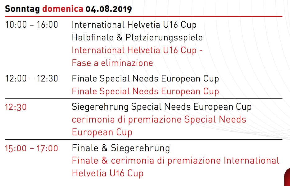 Da oggi a domenica 4 agosto si disputa a Cornaredo l’International Helvetia U16 Cup, prestigioso torneo di squadre U16 europee e la Special Needs European Cup.
