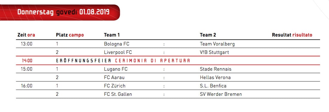 Partecipazione al tonero del primo d’agosto assieme ai settore giovanile dell’FC Lugano al completo e alla prima squadra questa sera